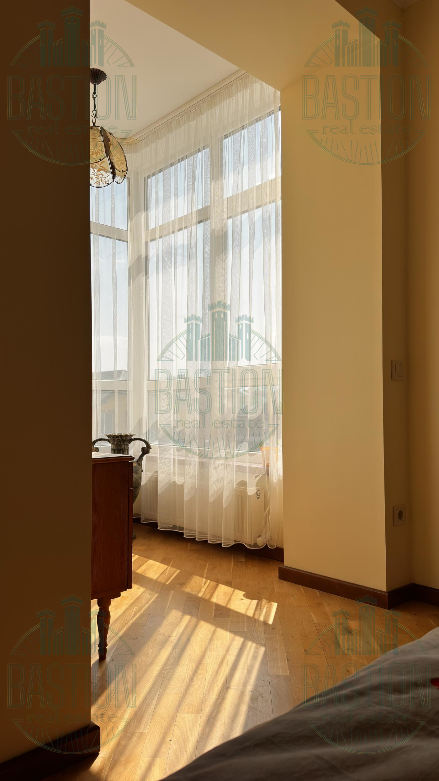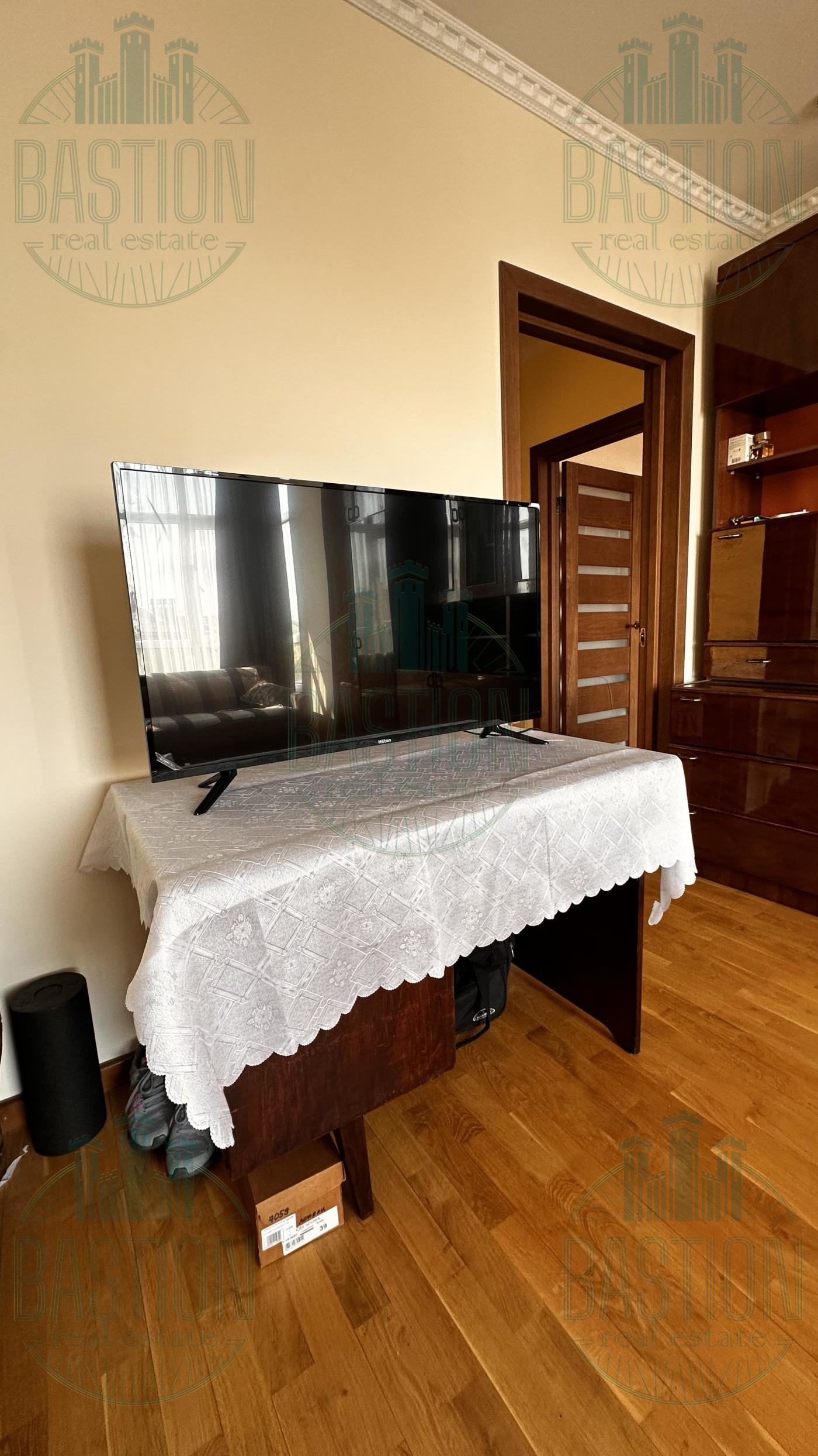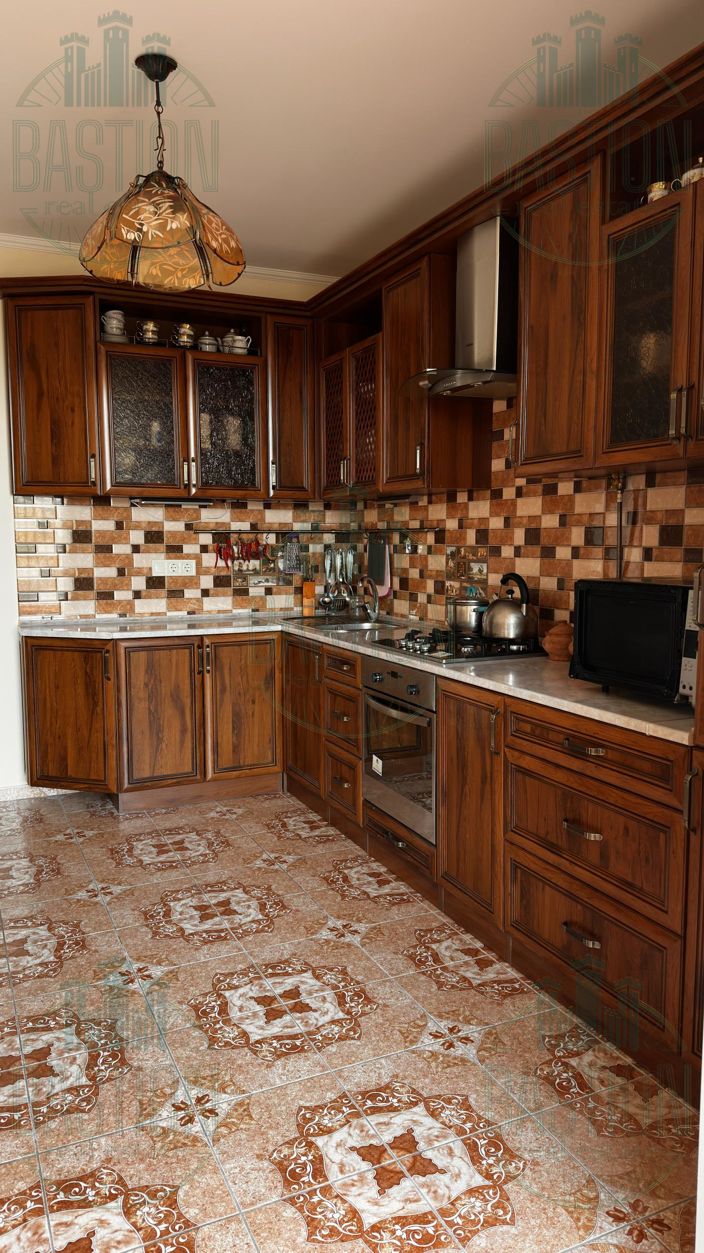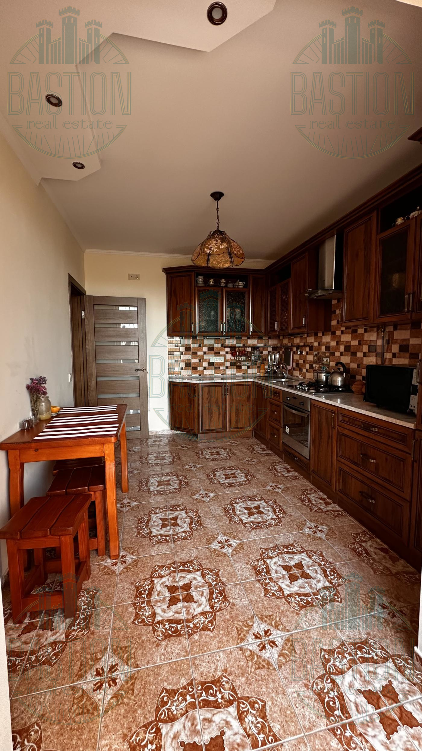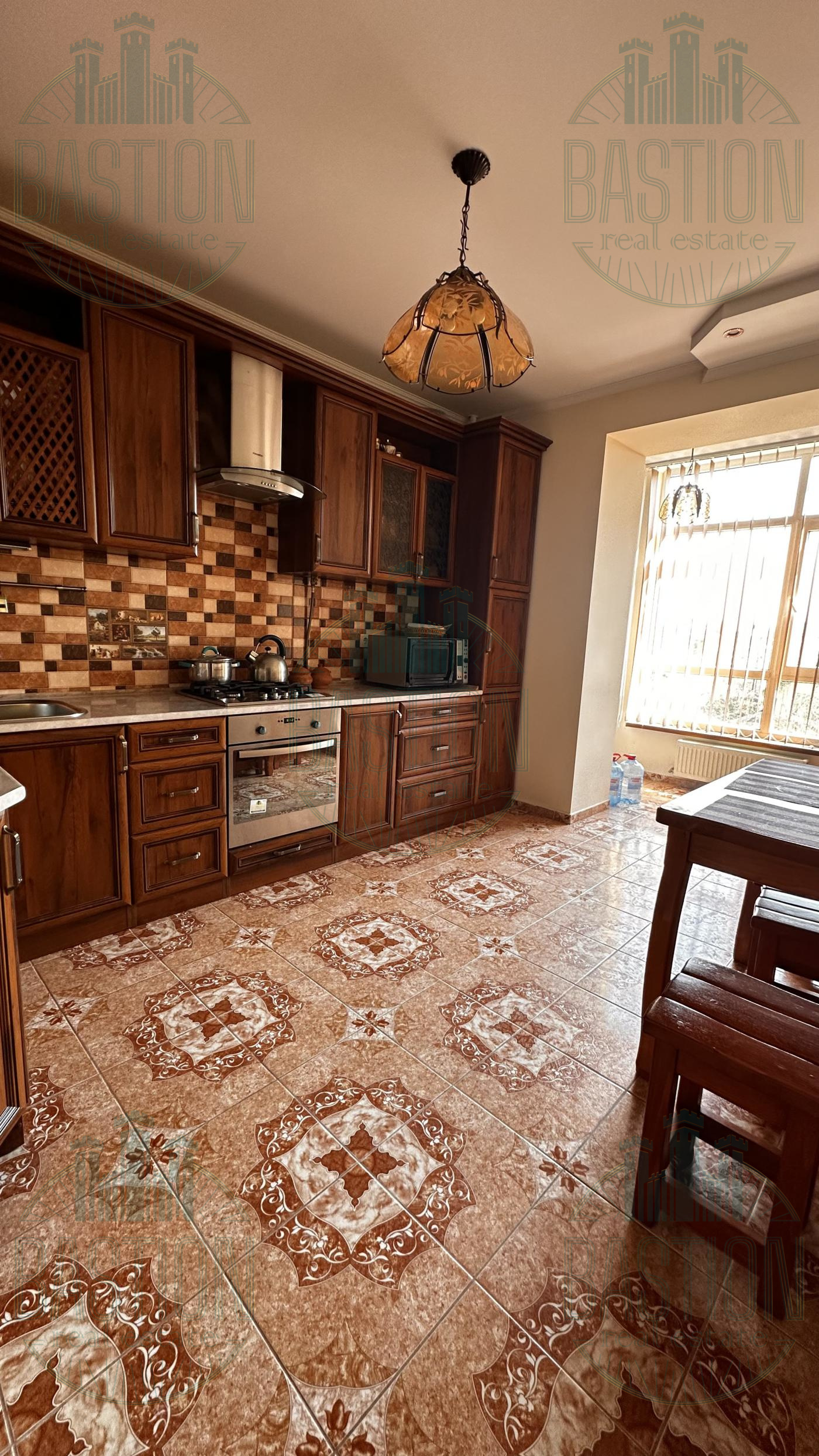 Кухня повністю укомплектована меблями з натурального дерева, є газова плита, духова шафа, витяжка та обідня зона. У вітальні велике панорамне вікно, що дає багато природного світла. Спальня окрема, тиха, з великим двоспальним ліжком та якісним паркетом. У квартирі встановлене індивідуальне газове опалення, що дає можливість самостійно регулювати температуру.